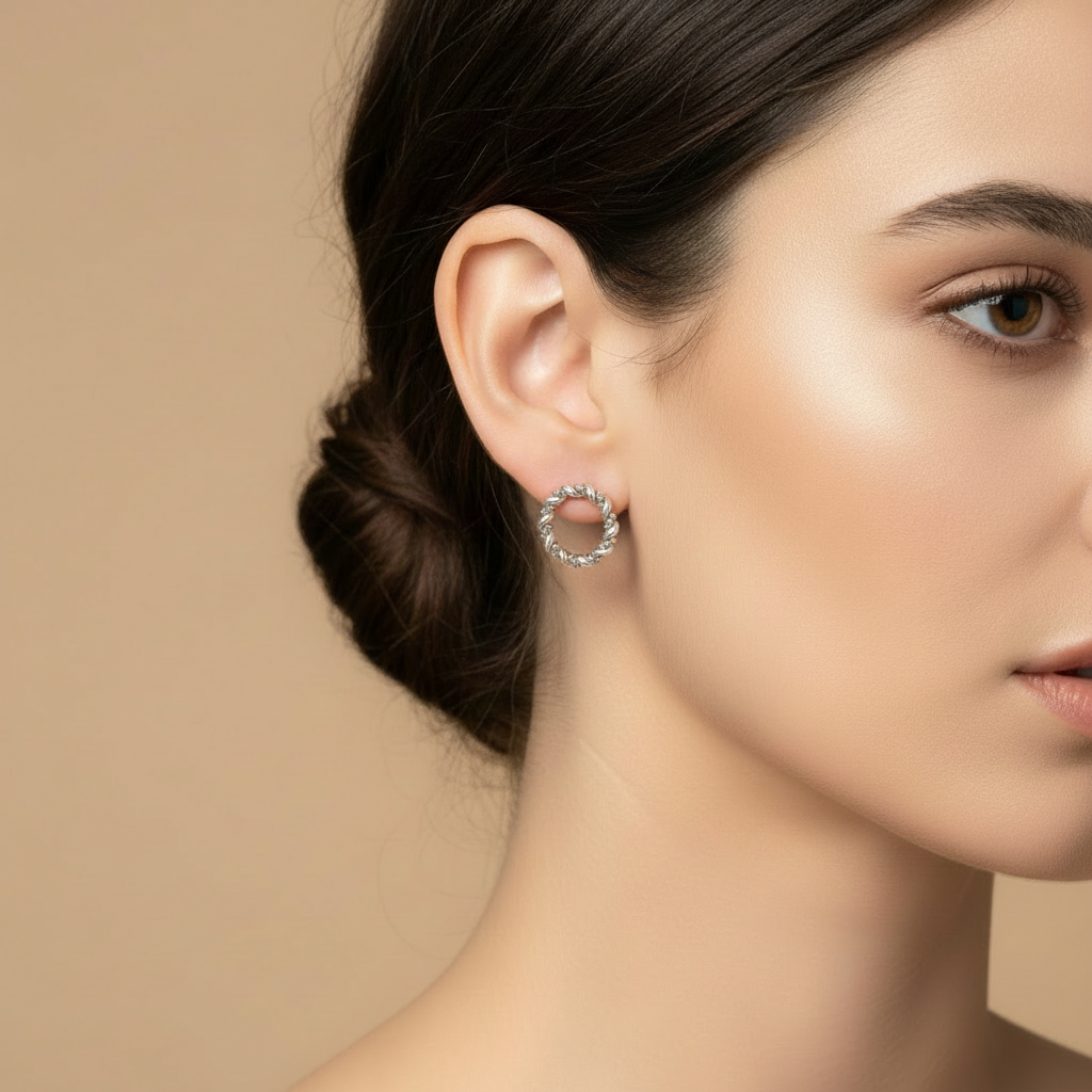 Enhance your silver jewellery collection with these elegant braided hoop stud earrings and enjoy the perfect balance of style and sophistication.