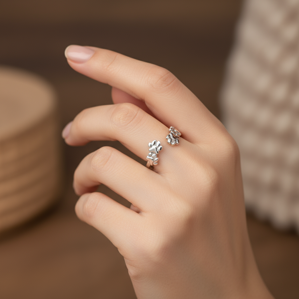 Paws Toe Ring in Sterling Silver. Playful adjustable paw design, handmade in Ireland for animal lovers.
