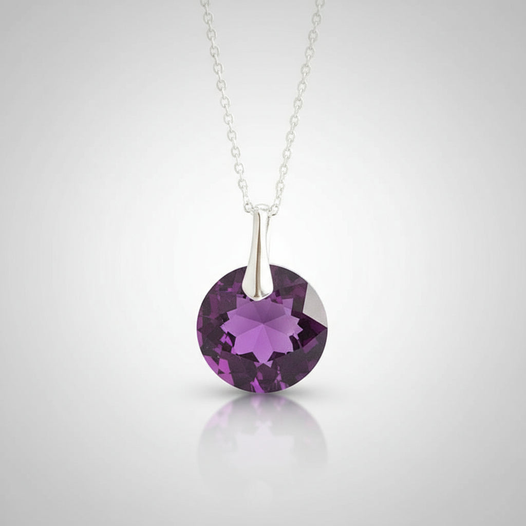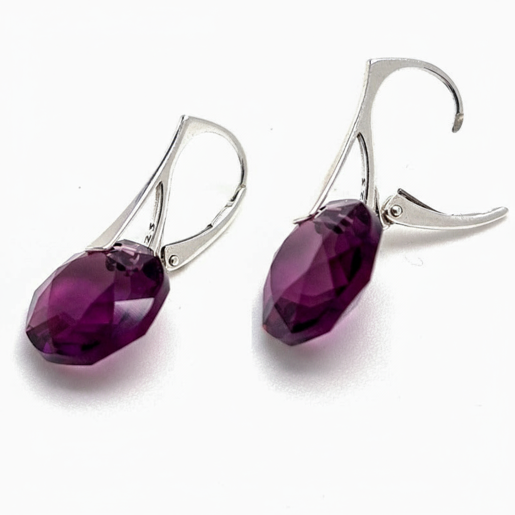 Amethyst, traditionally associated with clarity, balance, and wisdom, is reflected beautifully in these radiant 14mm Austrian crystals, precision-cut to dance with light. Available in nickel-free 925 sterling silver or luxurious 24k gold plating, each piece blends elegant design with meaningful symbolism.