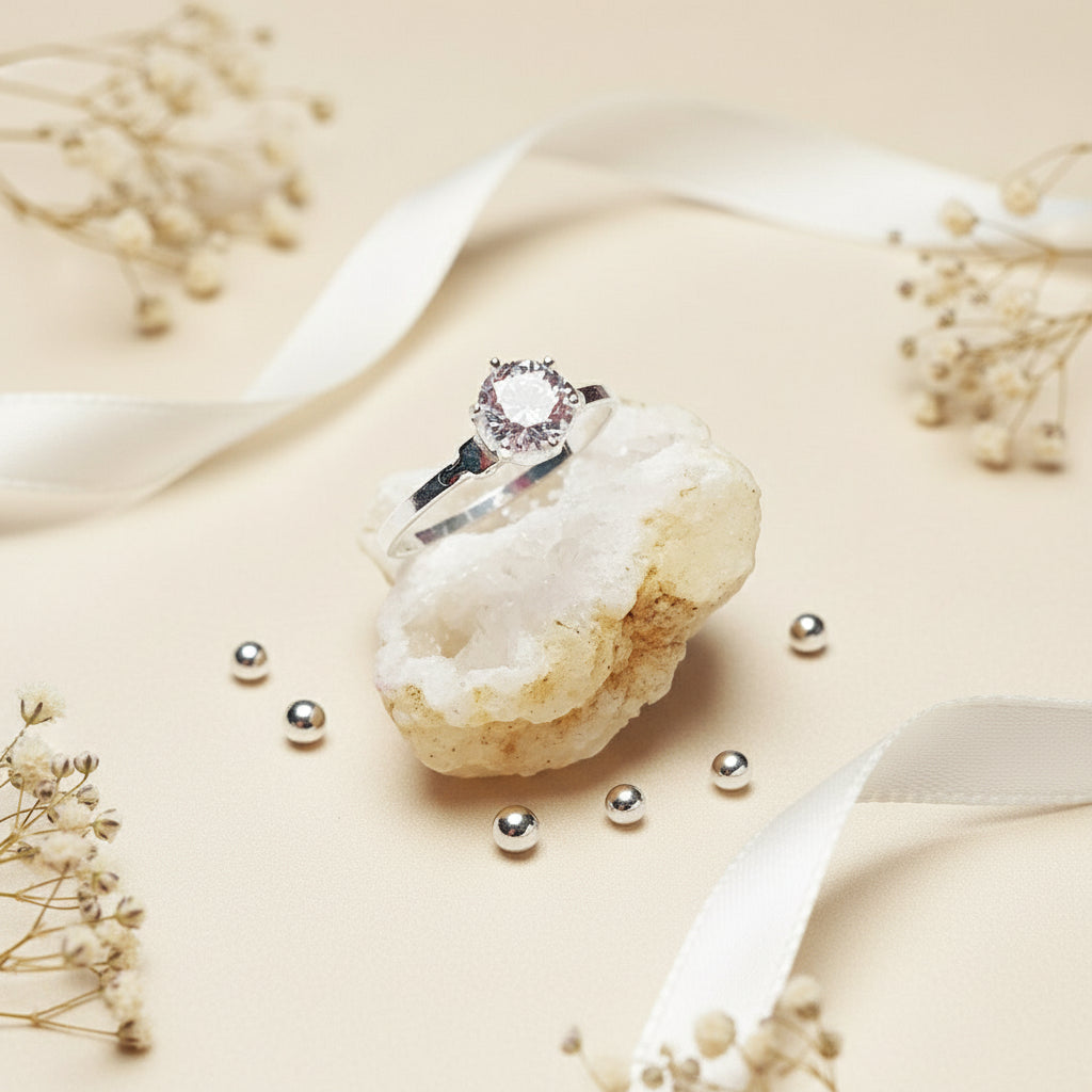 A timeless sterling silver solitaire ring designed to shine with pure elegance. Handcrafted in Ireland from nickel-free sterling silver, this classic piece features a brilliant-cut cubic zirconia that sparkles with diamond-like clarity. Lightweight, hypoallergenic, and beautifully feminine, it’s the perfect gift for yourself or someone you love—whether marking a milestone, celebrating an engagement, or adding everyday sparkle.
